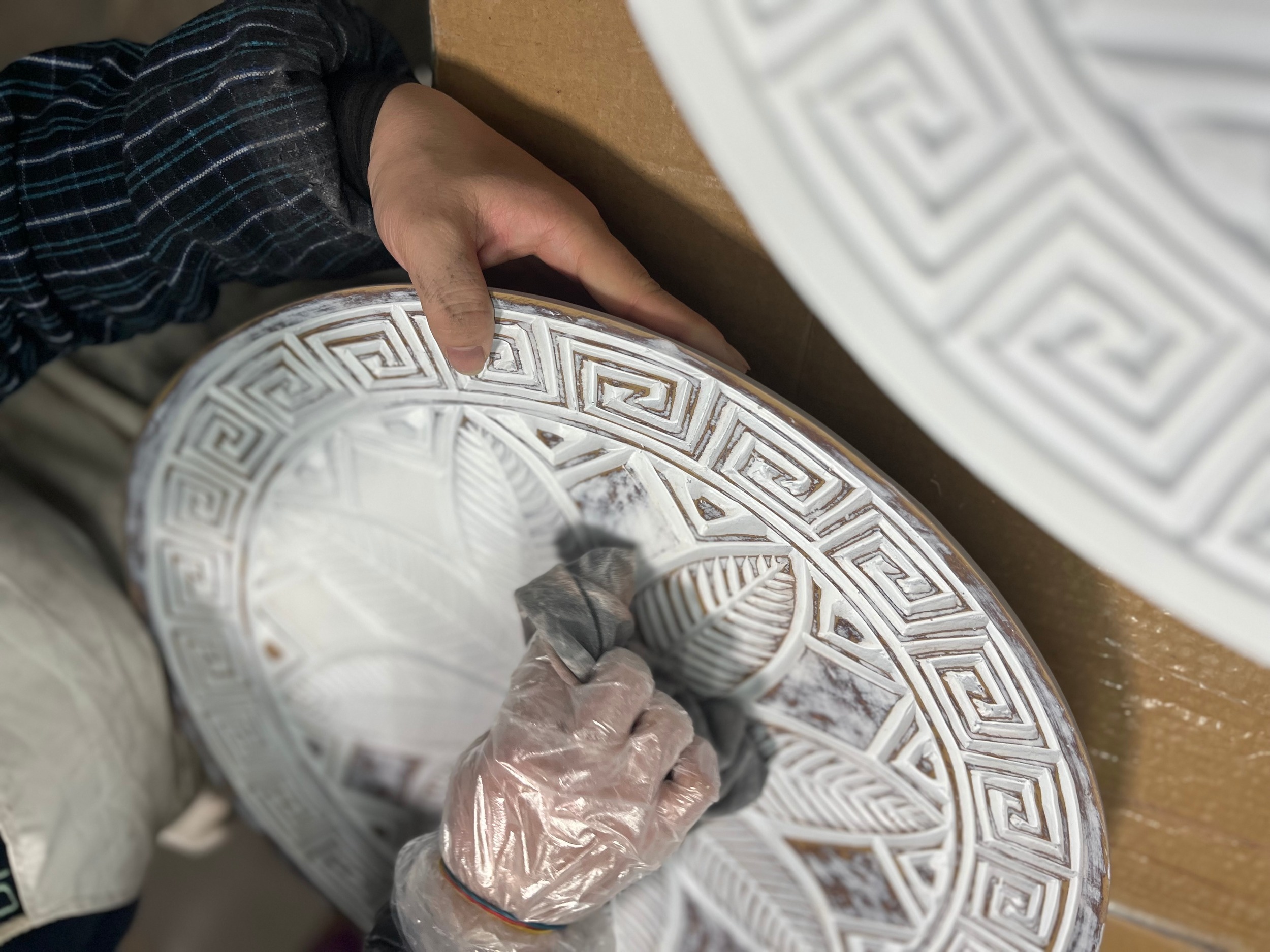 Beautifully crafted vase, hand Painted and antique patina finished by skilled artisan’s. To finish and adorn any living space you wish to bring to life. This magnificent water-tight, earthenware jar is handmade and hand-painted to perfection. Its clean, firm curves combine with a rustic, antiqued texture, giving it a contemporary and classic look at the same time. Fill it with fresh or dried flowers, but even when it’s empty, it will make a fine, decorative statement.