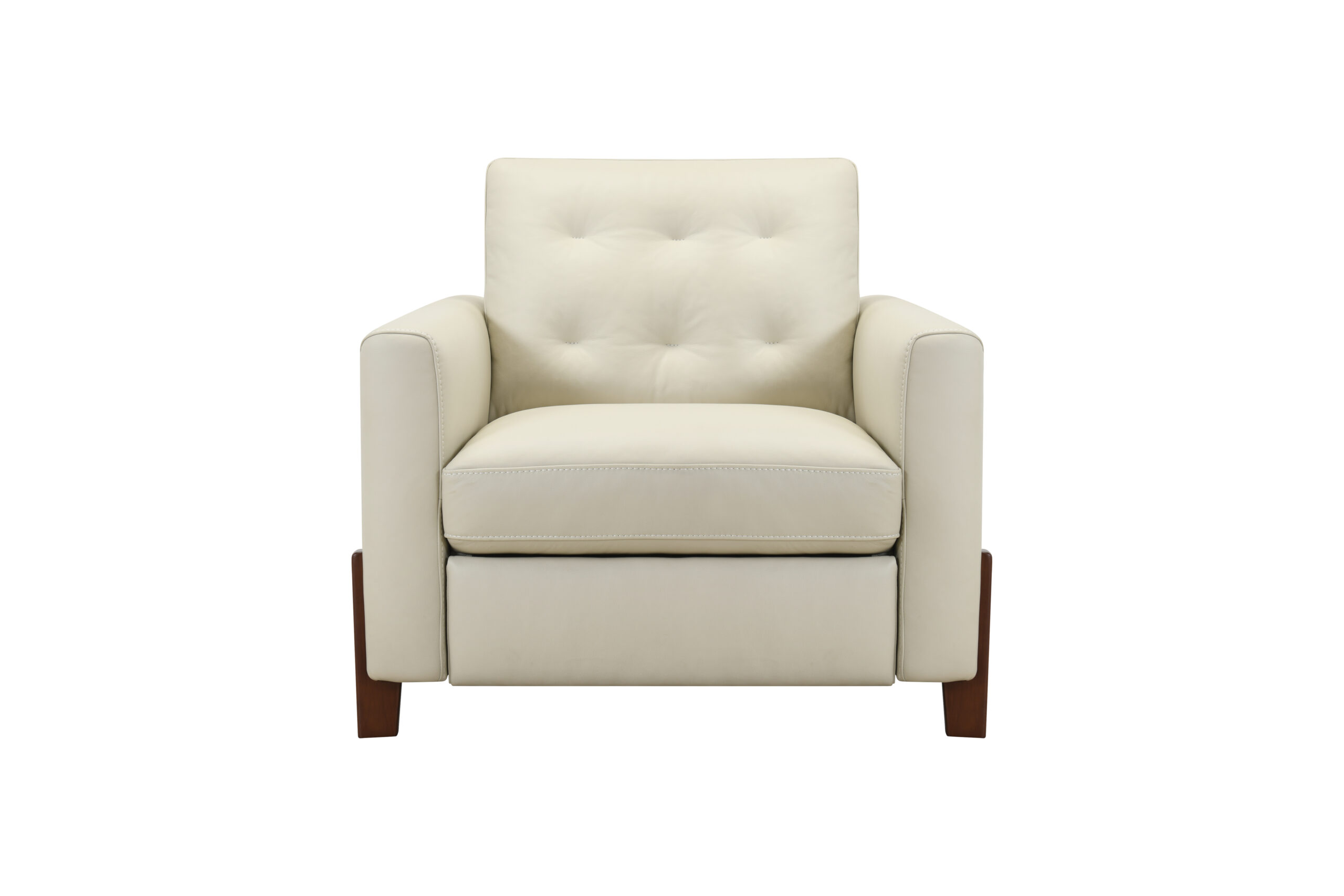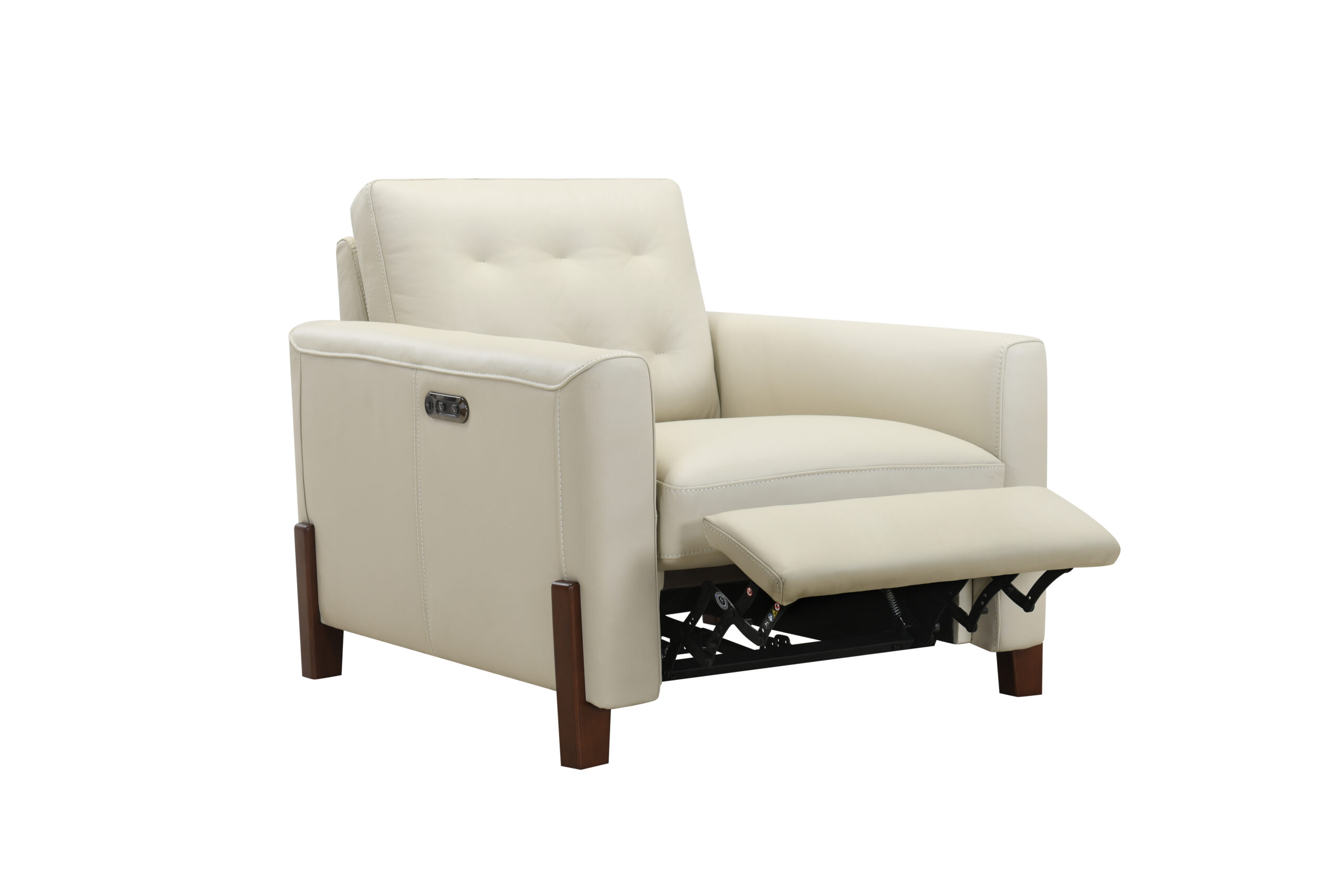 Transform your living room into a haven of comfort and style with the Cary armchair. Indulge in luxury and relaxation every day with this exquisite piece of furniture. The hidden footrest under a modern design and horizontal reclining back gives this top-grain leather reclining chair the look of stylish, lounge-inspired seating. The sofa features a horizontal position power recline for optimal relaxation. Styling is sleek, contemporary, and European-inspired.