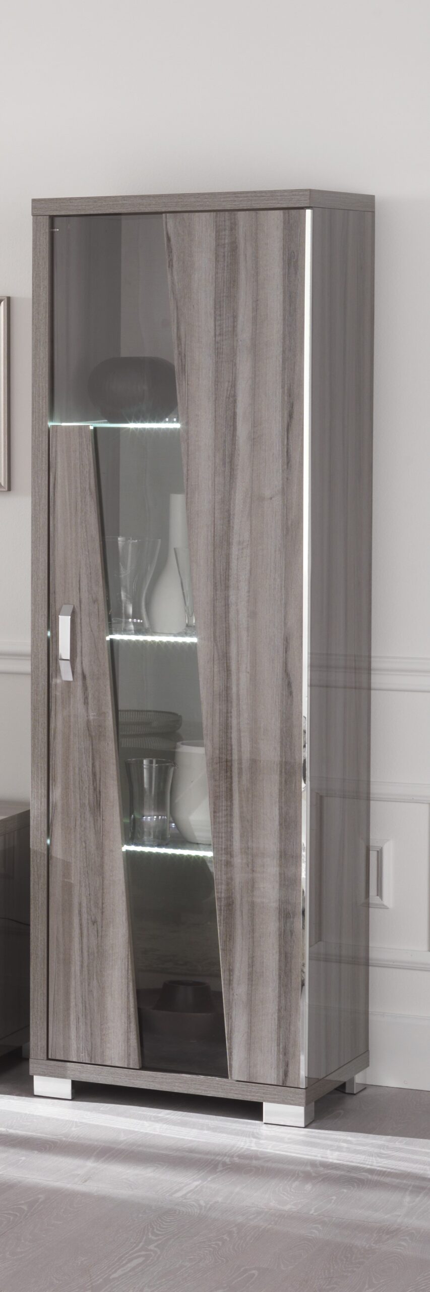 Glamour 1 Door Display Cabinet offers ample storage space and with a glass door, you can showcase your prized possessions in style. Made from grey high gloss finish with LED lighting adds a brilliant natural tone to your room. Also cabinet can be purchased left hand opening or right hand opening.