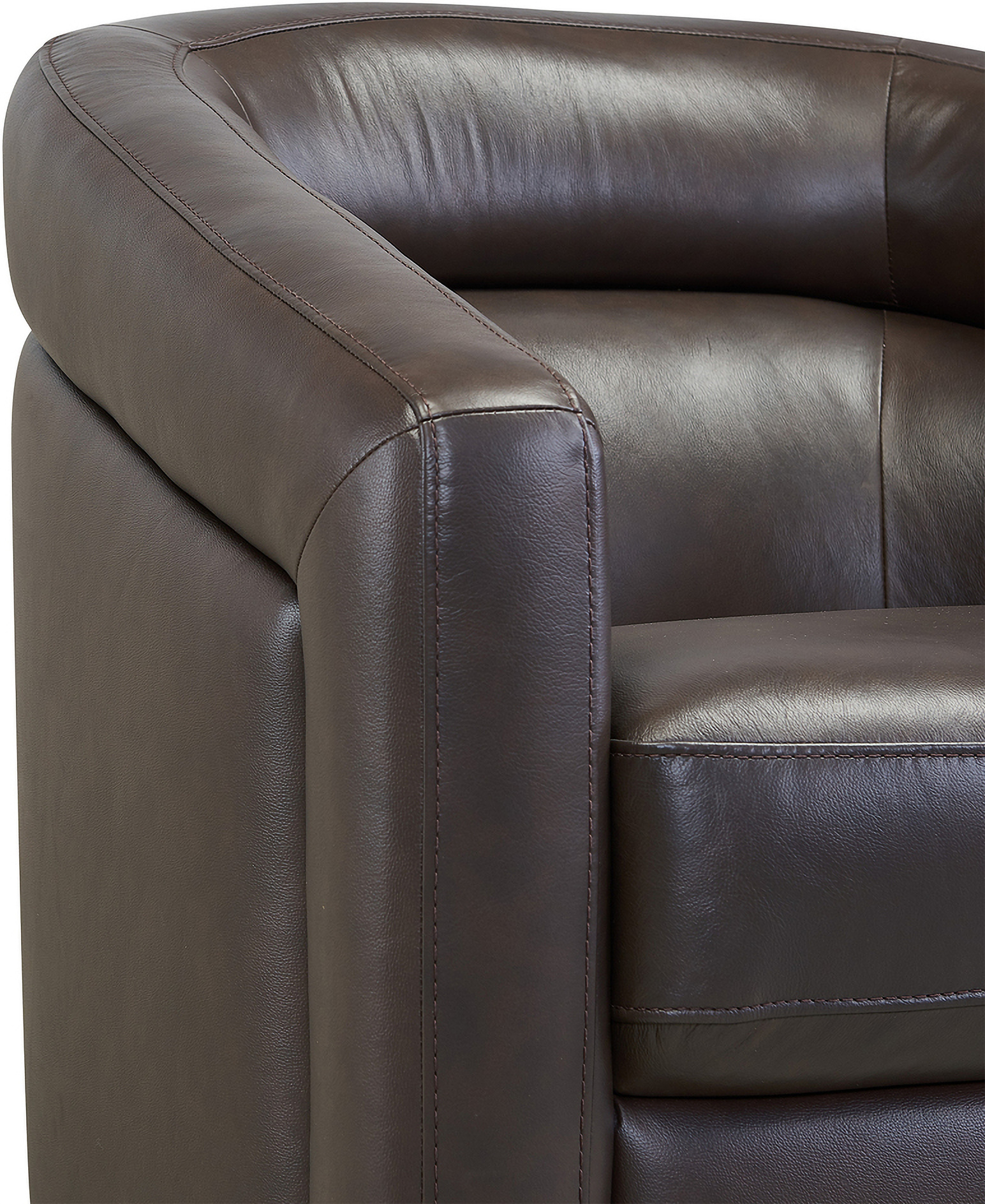 The Topaz Swivel Accent Chair brings classic appeal and a refined aesthetic to any room. Its stylish tub shape and elegant stitch detailing wrap around the body, creating a captivating seat with both comfort and style. Ideal for enhancing your living space, the Topaz offers a timeless design with its rounded back that ensures maximum support.  With a fantastic selection of top grain leather options you can customise this beautiful swivel accent chair to compliment your living space.
