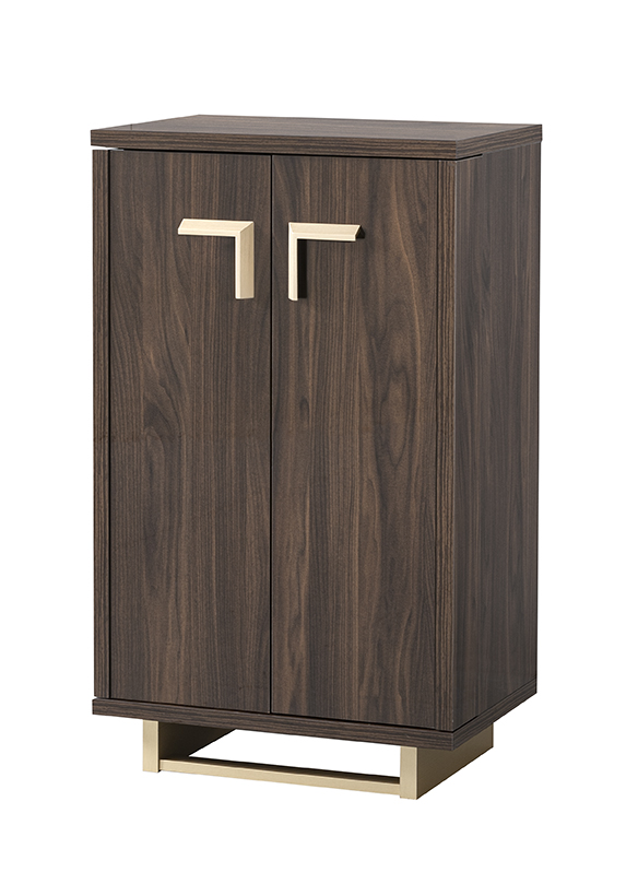 Volare Walnut 2 Door Bar Unit will add a majestic touch to your home, and will be a major focal point in your bedroom or dining room. Designed using quality walnut high gloss finish with original triangle cut handles in bleached, satin and brushed gold finish with matching plinths. The Adjustable internal shelves; customizable wine cellar inclined separator panel. Custom under top profiles allow for different glass size and shape storage.