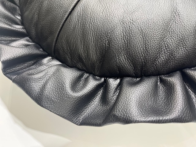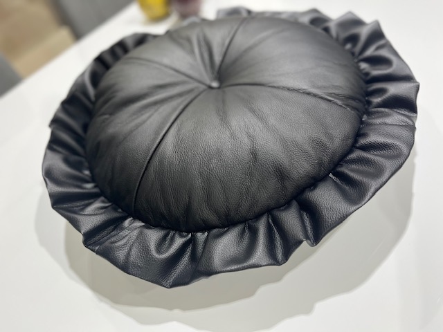 Cushion – Round Real Leather Cushion – stock – black & black frill