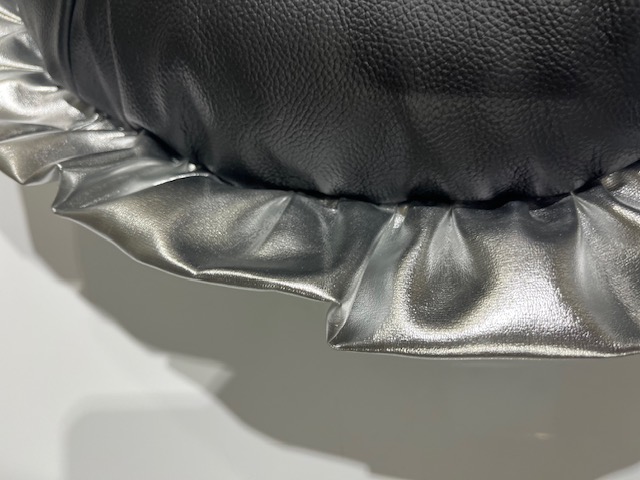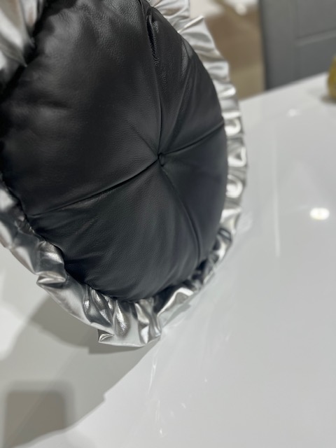 Cushion – Round Real Leather cushion – stock black with Silver frill