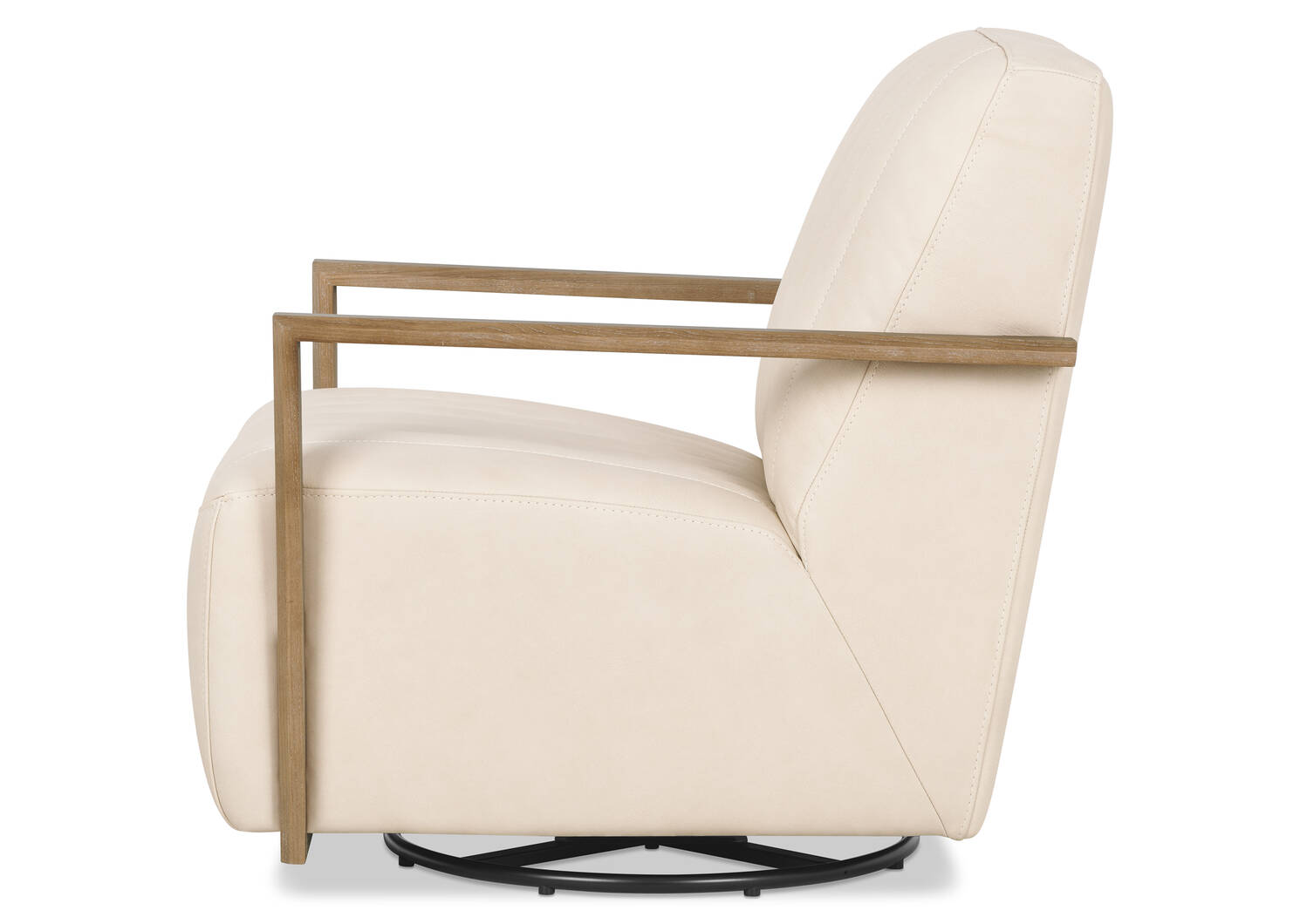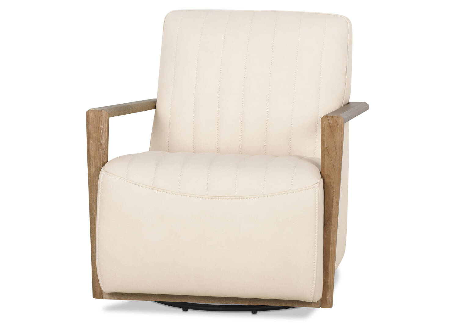 Constructed with top-quality materials including high-resilience foam and Dacron fibre, the Decor swivel base chair offers long-lasting comfort and durability. Its a sleek design with leather upholstery with understated vertical channels and a modern wooden armrest frame.