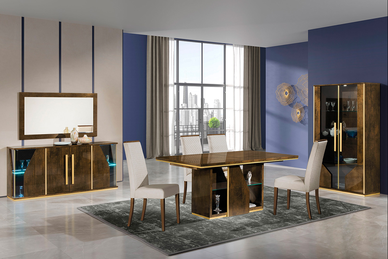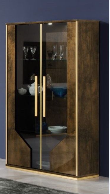 Desiree Italian 2 Door Vetrine will make for a stylish, spacious and practical centerpiece for any contemporary living room. Made of quality Italian bronze finish with gold handle with gold detail will look fantastic in your dining room. Featuring double glass fronted doors inside shelves give you a superb view inside at your ornaments.