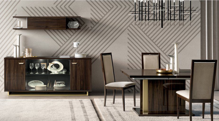 Volare Walnut 4 Door Sideboard offers plenty of internal storage space for storing away everything from plates and crockery to glassware and the like. Designed using quality walnut high gloss finish with original triangle cut handles in bleached, satin and brushed gold finish with matching plinths and internal led lights provide a focal point in any dining or living room. Also this sideboard has spacious top surface prove useful as it provides space to place vases, lamps, ornaments and more.
